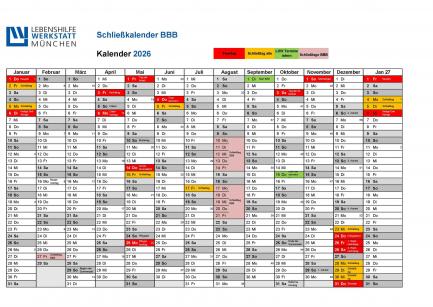 Schließkalender 2026 Berufsbildungsbereich (BBB) |